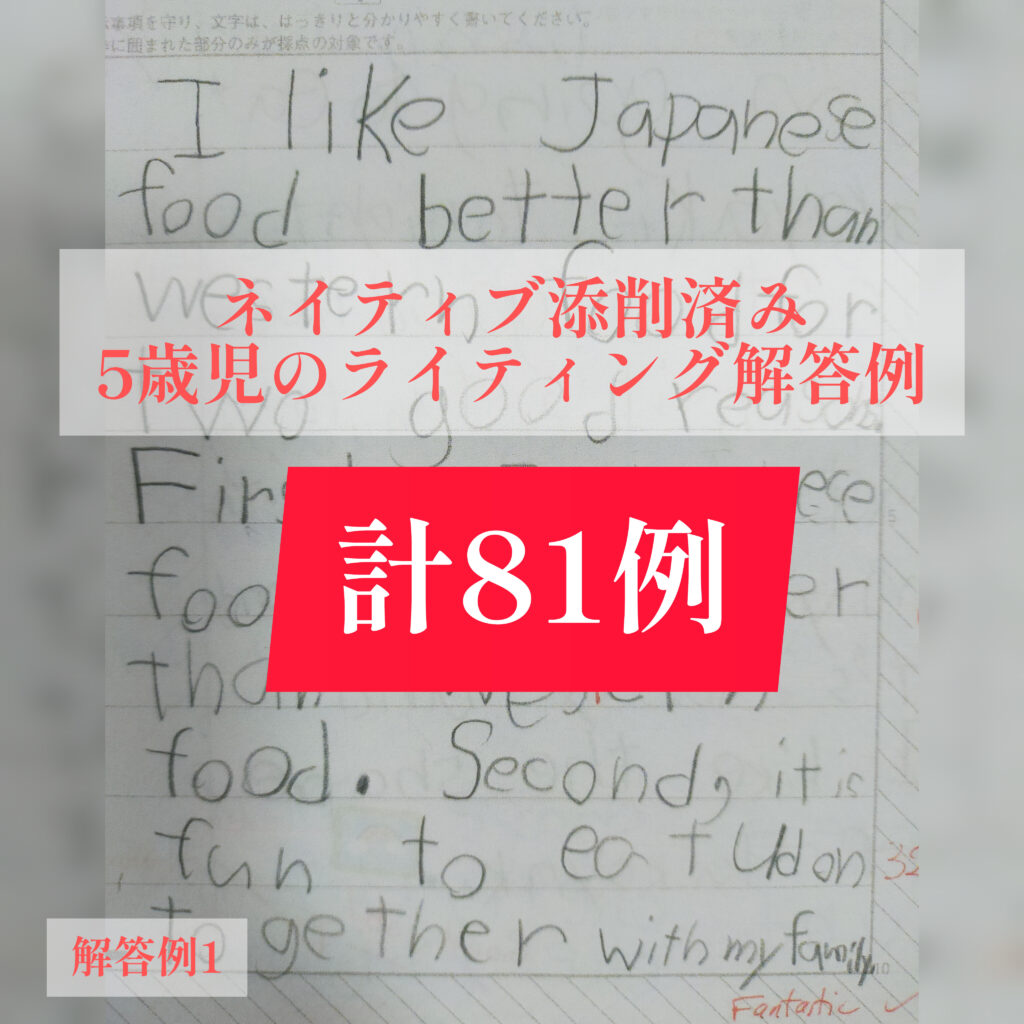 - ⑤資料4 ネイティブ英語教師が添削した娘のライティング解答例81題 41枚